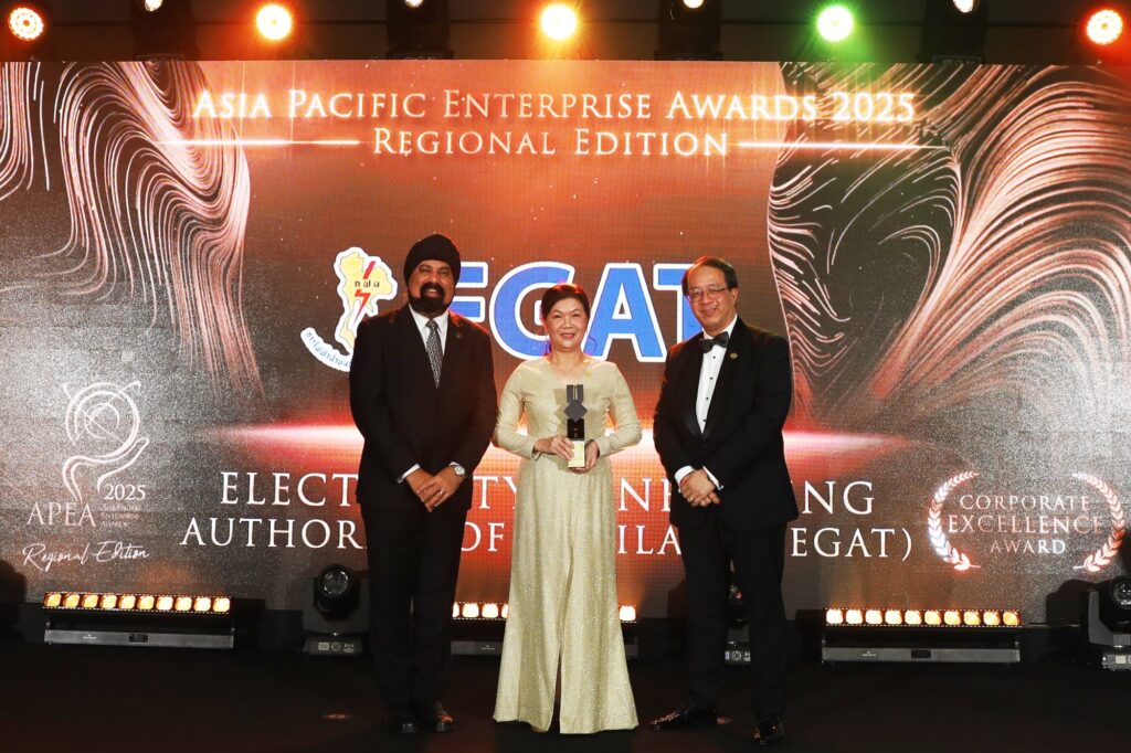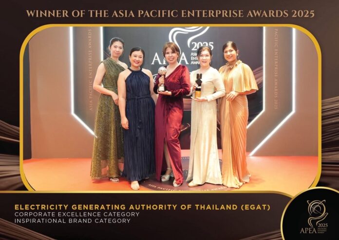 กฟผ. สร้างชื่อบนเวทีระดับภูมิภาคเอเชีย – แปซิฟิก คว้า 2 รางวัลเกียรติยศจากงาน Asia Pacific Enterprise Awards (APEA 2025) Regional Edition ในสาขา Corporate Excellence Award และ สาขาInspirational Brand Award ตอกย้ำความมุ่งมั่นในการขับเคลื่อนองค์การสู่ความเป็นเลิศ และการสร้างแบรนด์ที่มีพลังบวกต่อสังคม