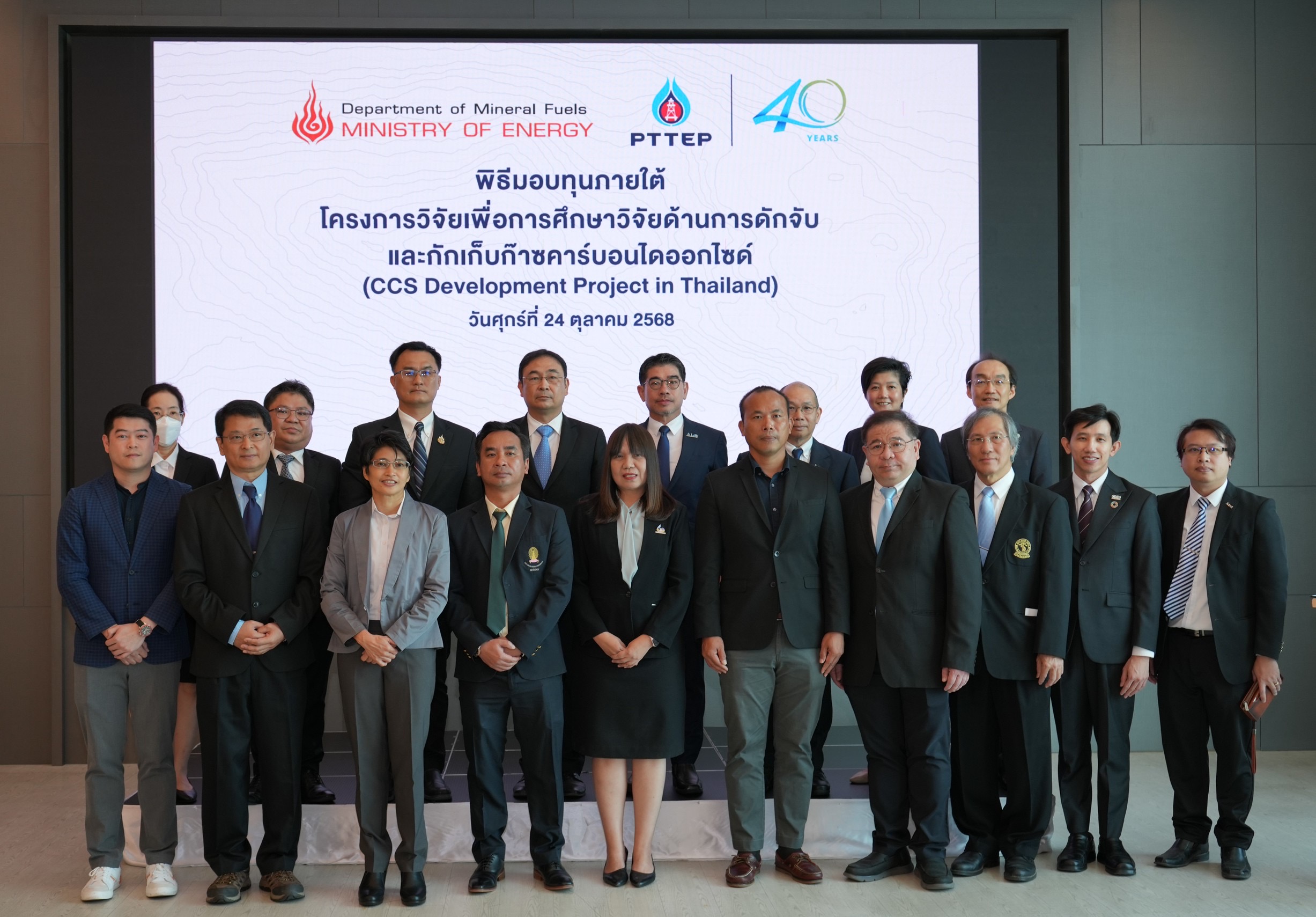 วันที่ 24 ตุลาคม 2568 นายวรากร พรหโมบล อธิบดีกรมเชื้อเพลิงธรรมชาติ เป็นประธานในพิธีมอบทุนภายใต้โครงการวิจัยเพื่อการศึกษาวิจัยด้านการดักจับและกักเก็บคาร์บอนไดออกไซด์ (CCS Development Project in Thailand) รวม 41 ล้านบาท ภายใต้ความร่วมมือระหว่าง กรมเชื้อเพลิงธรรมชาติ และบริษัท ปตท.สผ. เอนเนอร์ยี่ ดีเวลลอปเมนท์ จำกัด หรือ ปตท.สผ.อีดี ซึ่งเป็นบริษัทในเครือของ ปตท.สผ. เป็นการต่อยอดนโยบาย Quick Big Win ของกระทรวงพลังงาน โดยส่งเสริมการพัฒนาเทคโนโลยีดักจับและกักเก็บก๊าซคาร์บอนไดออกไซด์ (Carbon Capture and Storage หรือ CCS) มุ่งสู่เป้าหมายการปล่อยก๊าซเรือนกระจกสุทธิเป็นศูนย์ (Net Zero) ในปี ค.ศ. 2050