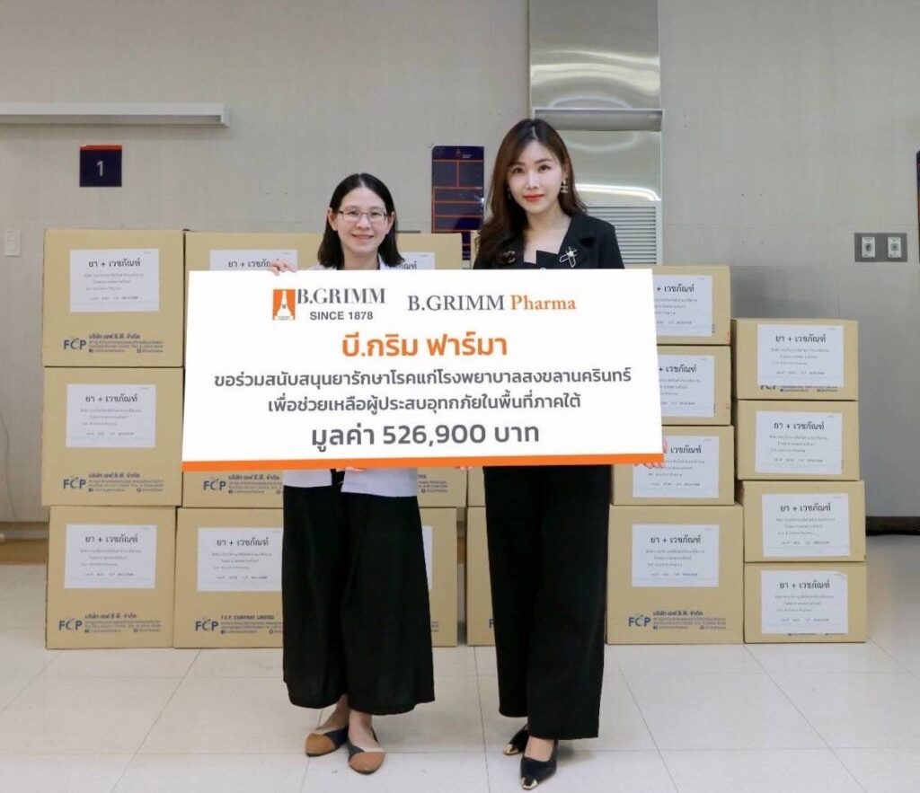 บี.กริม ฟาร์มาสนับสนุนยารักษาโรคแก่โรงพยาบาลสงขลานครินทร์เพื่อช่วยเหลือผู้ประสบอุทกภัยในพื้นที่ภาคใต้