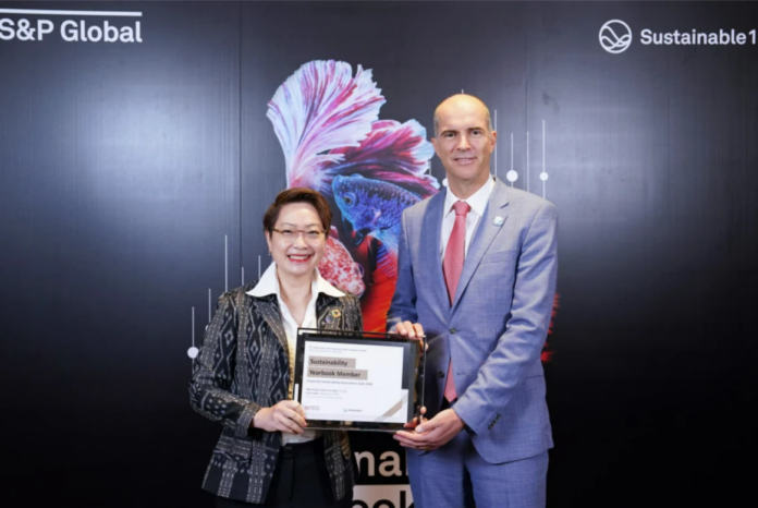 บริษัท ปตท.สำรวจและผลิตปิโตรเลียม จำกัด (มหาชน) หรือ ปตท.สผ. โดยนางสุศมา ปิตากุลดิลก (ซ้าย) ผู้ช่วยกรรมการผู้จัดการใหญ่ สายงานความยั่งยืนและบริหารผู้มีส่วนได้ส่วนเสีย เข้ารับรางวัลจากการที่ ปตท.สผ. ได้รับคัดเลือกให้อยู่ใน Sustainability Yearbook 2025 ของ S&P Global ต่อเนื่องเป็นปีที่ 12 จากนายโรเบิร์ต ดอร์เนา (ขวา) ผู้อำนวยการอาวุโส S&P Global Sustainable1 ซึ่ง ปตท.สผ. มีผลการดำเนินงานด้านความยั่งยืนในระดับ Top 15% ของบริษัทในกลุ่มธุรกิจน้ำมันและก๊าซขั้นต้นและครบวงจรซึ่งเข้าร่วมประเมินทั้งหมด 101 บริษัทจากทั่วโลก