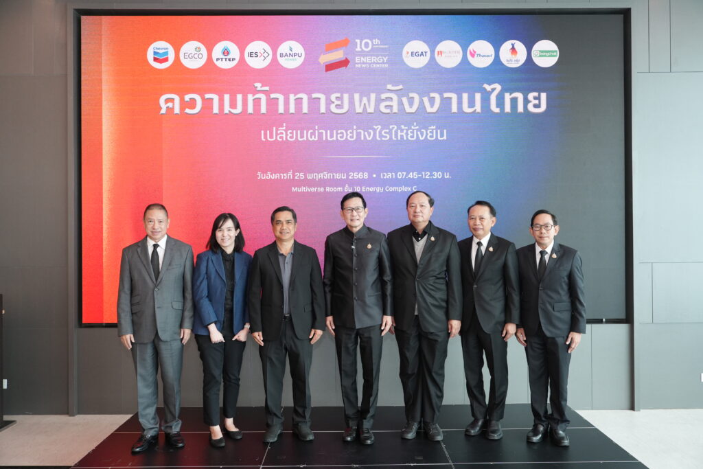 วันที่ 25 พ.ย. 2568 สำนักข่าวศูนย์ข่าวพลังงาน (Energy News Center – ENC) จัดสัมมนา “ความท้าทายพลังงานไทย เปลี่ยนผ่านอย่างไรให้ยั่งยืน” เนื่องในวาระครบรอบ 10 ปีของศูนย์ข่าวพลังงาน โดยมี นาย อรรถพล ฤกษ์พิบูลย์ รัฐมนตรีว่าการกระทรวงพลังงาน พร้อมด้วย นายประเสริฐ สินสุขประเสริฐ ปลัดกระทรวงพลังงาน, นายวัฒนพงษ์ คุโรวาท ผู้อำนวยการสำนักงานนโยบายและแผนพลังงาน (สนพ.), นายคุรุจิต นาครทรรพ ผู้อำนวยการสถาบันปิโตรเลียมและพลังงานแห่งประเทศไทย, นายนที สิทธิประศาสน์ ประธานกลุ่มอุตสาหกรรมพลังงานหมุนเวียน สภาอุตสาหกรรมแห่งประเทศไทย (ส.อ.ท.) และดร.กรรณิการ์ ธรรมพานิชวงค์ หัวหน้ากลุ่มงานวิจัย สถาบันวิจัยเศรษฐกิจป๋วย อึ๊งภากรณ์ ร่วมสัมมนา