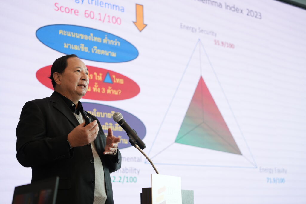 นายประเสริฐ สินสุขประเสริฐ ปลัดกระทรวงพลังงาน บรรยายในหัวข้อ “ภาพรวมความท้าทายพลังงานไทย” โดยระบุว่า การกำหนดนโยบายของกระทรวงพลังงาน ยึดหลักสำคัญ 3 ด้าน ที่ต้องคำนึงถึงควบคู่กันเพื่อออกนโยบายที่เกิดประโยชน์สูงสุดต่อประชาชนและประเทศ ได้แก่ ด้านความมั่นคงทางพลังงาน, พลังงานขับเคลื่อนเศรษฐกิจ และพลังงานคาร์บอนต่ำ โดยเร่งจัดทำแผน PDP ฉบับใหม่ให้เสร็จภายใน 3 เดือน ซึ่งจะต้องจัดทำพยากรณ์ความต้องการใช้ไฟฟ้าใหม่ ให้สอดคล้องกับโหลดไฟฟ้าที่เปลี่ยนไปรองรับธุรกิจ EV, Data Center, AI, IOT, Robotic โดยคาดว่า Data Center จะมีความต้องการใช้ไฟฟ้า 4 กิกะวัตต์ (GW) ภายในปี 2580 จากปัจจุบัน Data Center ใช้ไฟฟ้า 0.12 GW