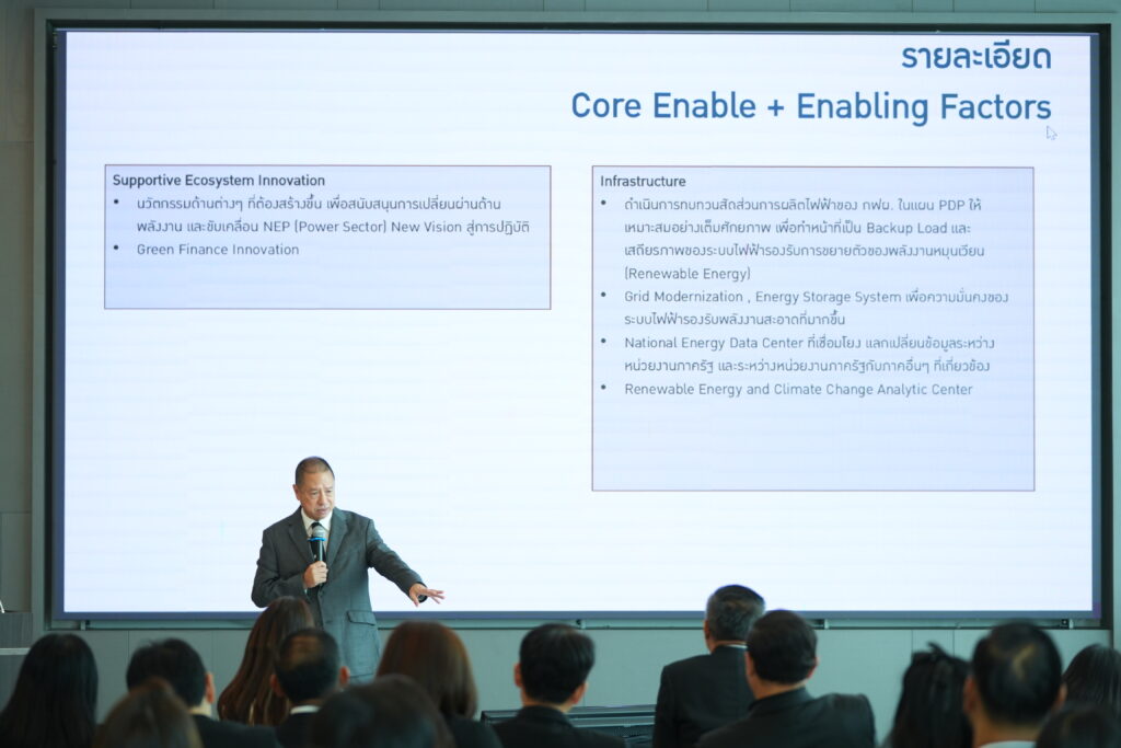 นายอรรถพล ฤกษ์พิบูลย์ รัฐมนตรีว่าการกระทรวงพลังงาน กล่าวว่า ประเทศไทยกำลังเผชิญกับความท้าทายครั้งใหญ่ ทั้งจากความไม่มั่นคงทางพลังงานระดับโลก ภัยคุกคามทางไซเบอร์ และแรงกดดันจากการเร่งปรับเป้าหมาย Net Zero ให้เร็วขึ้นถึง 15 ปี จากปี ค.ศ. 2065 เป็นปี ค.ศ. 2050 เพื่อตอบโจทย์นี้ กระทรวงพลังงานจึงได้นำเสนอนโยบาย Quick Big Win ด้านพลังงานผ่านโครงการต่างๆ เพื่อพัฒนาโครงสร้างพื้นฐานด้านพลังงานให้รองรับการเปลี่ยนผ่านและสร้างความยั่งยืนในระยะยาว ผ่านมาตรการต่างๆ ซึ่งจะนำไปสู่การลงทุนครั้งใหญ่กว่า 1 ล้านล้านบาท และทำให้ประเทศไทยบรรลุเป้าหมาย Net Zero ในปี 2050 ได้อย่างมั่นคงและยั่งยืน