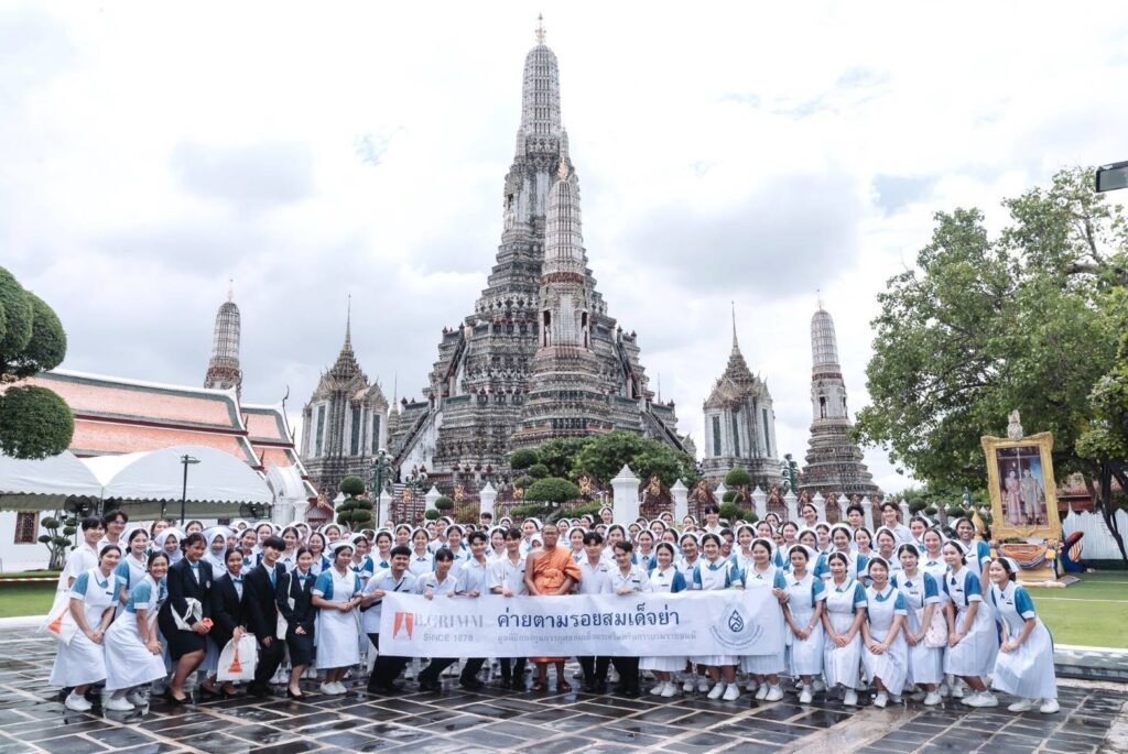 พร้อมกันนี้ มูลนิธิฯ ยังมีการเตรียมความพร้อมให้นักศึกษาที่จะออกไปปฏิบัติงานเมื่อจบการศึกษา โดยร่วมกับ บี.กริม จัดอบรม “ค่ายตามรอยสมเด็จย่า” รุ่นที่ 7 สำหรับกลุ่มนักศึกษาพยาบาล ของวิทยาลัยพยาบาลบรมราชชนนีที่ได้รับ ”ทุนการศึกษาสมเด็จย่า 90” จำนวน 120 คน เมื่อวันที่ 14 – 16 ตุลาคม 2568 ณ ศูนย์สัมมนาและฝึกอบรม มหาวิทยาลัยสุโขทัยธรรมาธิราช จังหวัดนนทบุรี เพื่อให้ความรู้เกี่ยวกับพระราชประวัติและพระราชกรณียกิจของสมเด็จพระศรีนครินทราบรมราชชนนี ตลอดจนการทัศนศึกษาสถานที่สำคัญ เช่น อุทยานเฉลิมพระเกียรติสมเด็จพระศรีนครินทราบรมราชชนนี พิพิธภัณฑ์ศิริราชพิมุขสถาน พิพิธภัณฑ์การแพทย์ศิริราช และวัดอรุณราชวรารามราชวรมหาวิหาร โดยมีเป้าหมายเพื่อให้นักศึกษาทุนพยาบาล มีความรู้ความเข้าใจในแนวคิดและแนวปฏิบัติตามอุดมการณ์การพยาบาลของสมเด็จย่า มีความรักและความภาคภูมิใจในวิชาชีพการพยาบาล และยึดมั่นวิชาชีพพยาบาลตามรอยสมเด็จย่า โดยปัจจุบันมีนักศึกษาเข้ารับการอบรม “ค่ายตามรอยสมเด็จย่า” แล้วจำนวน 603 คน