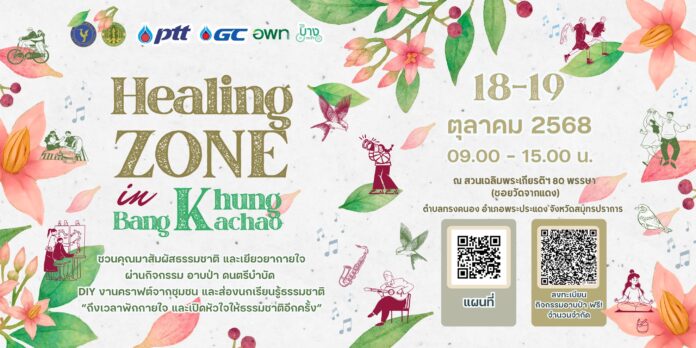 ศูนย์เรียนรู้สวนฯ 80 พรรษา คุ้งบางกะเจ้า จัดกิจกรรม “ฮีลลิ่ง โซน อิน คุ้งบางกะเจ้า (Healing Zone in Khung Bang Kachao)” เปิดประสบการณ์ท่องเที่ยวเชิงสุขภาพแนวใหม่ ผสานธรรมชาติ ดนตรี และกิจกรรมวัฒนธรรมเพื่อการผ่อนคลายและฟื้นฟูใจ ภายใต้บรรยากาศร่มรื่นภายในงาน ผู้เข้าร่วมได้สัมผัสกิจกรรม อาบป่า เดินช้า ๆ ท่ามกลางแมกไม้ สูดอากาศบริสุทธิ์ เติมพลังธรรมชาติให้กายใจ และผ่อนคลายความเครียดด้วย ดนตรีบำบัด เสียงเครื่องดนตรีธรรมชาติที่ช่วยปรับคลื่นสมองให้สงบและสมดุล นอกจากนี้ ยังมีกิจกรรม DIY เชิงวัฒนธรรม อาหารอัตลักษณ์ นิทรรศการ “คุ้งบางกะเจ้า” เรียนรู้เรื่องราวของคุ้งบางกะเจ้าอย่างลึกซึ้งถ่ายทอดภูมิปัญญาท้องถิ่นผ่านงานหัตถศิลป์และกิจกรรมเรียนรู้เรื่องนก เพื่อเชื่อมโยงผู้คนกับสิ่งแวดล้อมรอบตัว