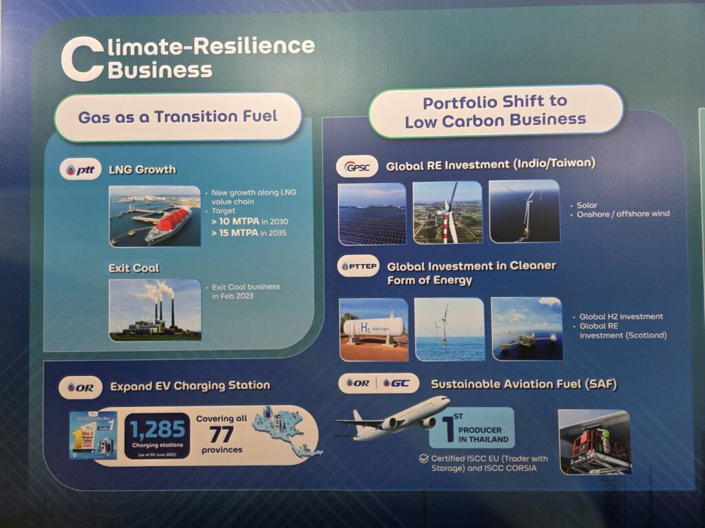 และที่น่าสนใจในงานประชุมครั้งนี้ คือมีการจัดแสดงบอร์ดนิทรรศการหน้าห้องประชุม เพื่อให้ผู้เข้าร่วมงานได้รับทราบถึงทิศทาง กลยุทธ์ และโครงการลงทุนที่สำคัญของกลุ่มองค์กรในอุตสาหกรรมปิโตรลียมและอุตสาหกรรมที่เกี่ยวข้อง อาทิ กลุ่ม ปตท. กลุ่มบางจาก และโตโยต้า ที่จะเดินหน้าขับเคลื่อนในช่วงแห่งการเปลี่ยนผ่านพลังงานสู่ความยั่งยืน