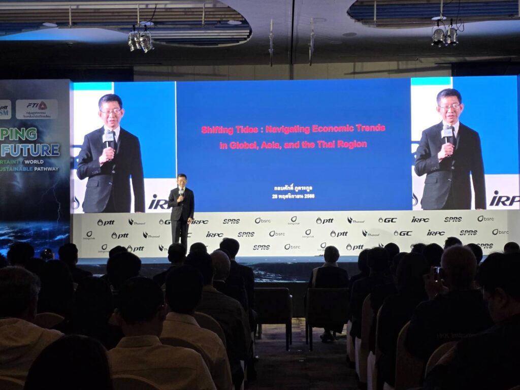 อาจเป็นเรื่องยากที่จะบอกอย่างชัดเจนว่าทิศทางราคาน้ำมันโลกในปี 2026 จะเป็นอย่างไร แต่ผู้เชี่ยวชาญในงานสัมมนา 2025 The Annual Petroleum Outlook Forum “SHAPING THE FUTURE : In an uncertainty world through sustainable pathway” เพื่อเตรียมความพร้อมในยุคแห่งการเปลี่ยนผ่านสู่ความยั่งยืน ที่จัดโดยกลุ่ม ปตท. และกลุ่มอุตสาหกรรมโรงกลั่นฯ สภาอุตสาหกรรมแห่งประเทศไทย เมื่อวันที่ 28 พฤศจิกายน 2568 ได้พยายามวิเคราะห์ถึงปัจจัยภายนอกและภายใน และปัจจัยด้านภูมิรัฐศาสตร์ ที่จะส่งผลกระทบต่อราคาน้ำมันดิบในตลาดโลก เพื่อให้ได้ผลพยากรณ์ที่ใกล้เคียงความเป็นจริงได้มากที่สุด โดยทีมนักวิเคราะห์สถานการณ์น้ำมัน กลุ่ม ปตท. (PRISM Experts) กล่าวถึงเศรษฐกิจโลกว่ากำลังเผชิญแรงกดดันสองด้าน ทั้งจากอุปสงค์น้ำมันที่อ่อนแอเพราะผลกระทบจากกำแพงภาษีของสหรัฐอเมริกาและการเปลี่ยนผ่านสู่พลังงานสะอาด ประกอบกับอุปทานจากประเทศกลุ่ม OPEC+ และ Non-OPEC+ ที่เพิ่มกำลังการผลิตอย่างต่อเนื่อง ทำให้อุปทานล้นตลาด จึงคาดว่าราคาน้ำมันดิบในปี 2569 จะปรับอยู่ในกรอบ 60 – 70 ดอลลาร์สหรัฐต่อบาร์เรล