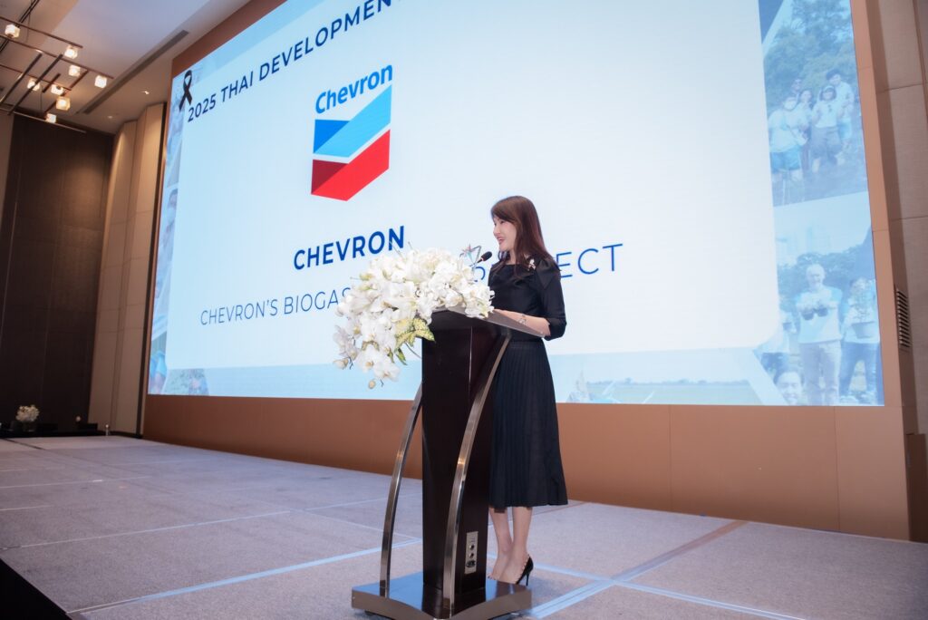 รางวัล “Thai Development Award” เป็นหนึ่งในสามรางวัลพิเศษที่มอบให้แก่องค์กรที่จัดทำโครงการที่สร้างผลกระทบเชิงบวกต่อสังคม ซึ่งเชฟรอนได้รับรางวัลนี้ จากโครงการ “ก๊าซชีวภาพสหกรณ์ยางพาราสู่สังคมคาร์บอนต่ำ” ที่เป็นความร่วมมือกับสถาบันวิจัยระบบพลังงาน (PERIN) มหาวิทยาลัยสงขลานครินทร์ ในการมอบความรู้ให้กับชุมชน นำระบบก๊าซชีวภาพ ระบบพลังงานแสงอาทิตย์ และโมเดล Zero Waste มาใช้ในกระบวนการรมควันยางแผ่น เพื่อเปลี่ยนน้ำเสียเป็นก๊าซชีวภาพและนำมารมควันจนได้ ‘ยางแผ่นรมควันคาร์บอนต่ำ’ เป็นผลสำเร็จ และสามารถแก้ปัญหาสิ่งแวดล้อม เช่น กลิ่นเหม็นและน้ำเสียจากการผลิตยางแผ่นรมควันแบบดั้งเดิมของกลุ่มเกษตรกรชาวสวนยาง