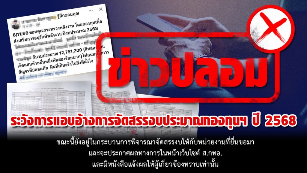 เตือนระวังมิจฉาชีพ แอบอ้างอนุมัติงบกองทุนอนุรักษ์พลังงาน ปี 68