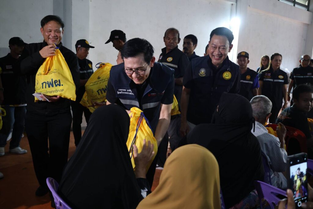 ด้านการช่วยเหลือพี่น้องประชาชนที่ได้รับผลกระทบจากอุทกภัยในครั้งนี้ กระทรวงพลังงาน โดย กฟผ. ได้ส่งมอบถุงยังชีพกว่า 10,000 ถุง น้ำดื่ม และข้าวกล่องแก่ผู้ประสบอุทกภัย รวมถึงนำทีมวิศวกรและช่างจิตอาสาจากฝ่ายปฏิบัติการภาคกลาง ฝ่ายปฏิบัติการภาคใต้ ฝ่ายจัดการด้านการใช้พลังงาน เขื่อนรัชชประภา เขื่อนบางลาง และโรงไฟฟ้าจะนะกว่า 40 คน ร่วมลงพื้นที่ในโครงการฟื้นฟู ซ่อมแซม ระบบไฟฟ้า แสงสว่าง และตรวจสอบความเสียหายบ้านเรือนผู้ที่ประสบภัยน้ำท่วมในพื้นที่จังหวัดสงขลาของมูลนิธินายช่างไทย ใจอาสา ระหว่างวันที่ 5 – 9 ธันวาคม เพื่อฟื้นฟูระบบไฟฟ้าให้แก่ผู้ประสบอุทกภัยในชุมชนรอบโรงไฟฟ้าจะนะและบ้านเรือนใน อ.หาดใหญ่ จ.สงขลา เนื่องจากอุปกรณ์ไฟฟ้าแช่อยู่ในน้ำเป็นเวลานาน ดินโคลนเข้าไปอุดตัน ทำให้อาจมีกระแสไฟฟ้ารั่ว รวมถึงตัวอุปกรณ์บางส่วนชำรุดเสียหาย กฟผ. จึงเปลี่ยนอุปกรณ์ไฟฟ้า อาทิ เบรคเกอร์ สวิตช์ไฟ ปลั๊กไฟ และหลอดไฟฟ้า เพื่อปรับปรุงระบบไฟฟ้าให้กลับมาใช้งานได้อย่างปลอดภัย