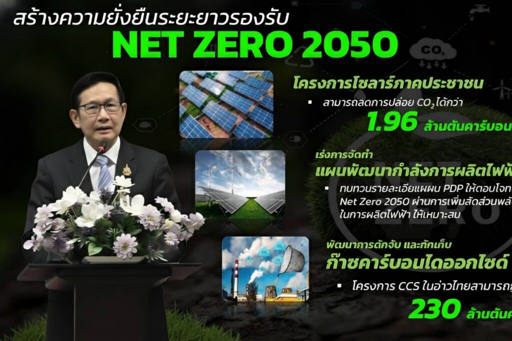 และในด้านของสิ่งแวดล้อม รัฐบาลได้ปรับเป้าหมายขยับเวลา “การปล่อยก๊าซเรือนกระจกสุทธิเป็นศูนย์ (Net Zero)” ให้เร็วขึ้นจากปี ค.ศ. 2065 (พ.ศ. 2608) ไปเป็น ค.ศ. 2050 (พ.ศ. 2593) หรือเร็วขึ้น 15 ปี ซึ่งจะมาจากโครงการโซลาร์ภาคประชาชน, การวางแผน PDP ฉบับใหม่ และการพัฒนาเทคโนโลยีดักจับและกักเก็บก๊าซคาร์บอนไดออกไซด์ (CCS)