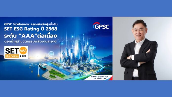 สำหรับการได้รับการจัดอันดับ SET ESG Rating ระดับสูงสุด AAA ต่อเนื่อง 2 ปี ถือเป็นอีกก้าวสำคัญที่ตอกย้ำบทบาทของ GPSC ในฐานะผู้นำนวัตกรรมพลังงานแห่งอนาคต ซึ่งไม่ได้มุ่งเพียงการเติบโตของธุรกิจ แต่ให้ความสำคัญกับความรับผิดชอบต่อสังคม สิ่งแวดล้อม และผู้มีส่วนได้เสียทุกภาคส่วน โดย GPSC ยังเดินหน้าสร้างวัฒนธรรมองค์กรที่โปร่งใส ตรวจสอบได้ พร้อมยกระดับศักยภาพบุคลากร การดูแลชุมชนและสังคม เพื่อสร้างคุณค่าร่วมให้กับเศรษฐกิจและสังคมไทย ควบคู่กับการแสวงหาเทคโนโลยีพลังงานสะอาดใหม่ๆ ที่มีต้นทุนสามารถแข่งขันได้ สอดคล้องกับทิศทางโลกที่ให้ความสำคัญกับการลดผลกระทบจากภาวะโลกร้อนอย่างจริงจัง ซึ่งการดำเนินธุรกิจภายใต้กรอบ ESG อย่างเข้มข้นนี้ จะช่วยเสริมความแข็งแกร่งขององค์กรในระยะยาวและยังสร้างความเชื่อมั่นให้กับนักลงทุนทั้งในและต่างประเทศ สะท้อนบทบาทของ GPSC ในฐานะกลไกสำคัญของประเทศที่ขับเคลื่อนพลังงานสะอาดและเศรษฐกิจไทยสู่อนาคตที่ยั่งยืน