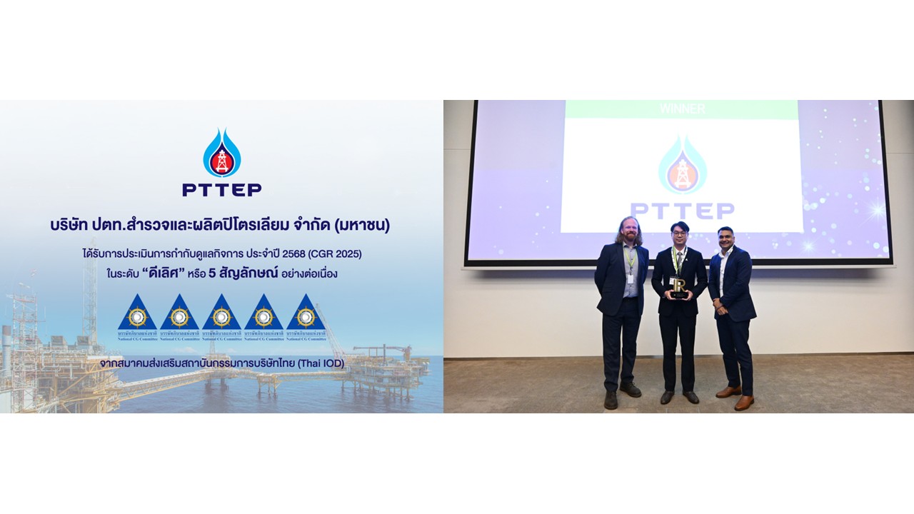 PTT Exploration and Production Public Company Limited (PTTEP) earned the “Excellent” level (five symbols) recognition in the Corporate Governance Report of Thai Listed Companies 2025 (CGR 2025) by the Thai Institute of Directors Association (Thai IOD) and ranked in the “Top Quartile” among listed companies with a minimum market capitalization of THB 100,000 million. This marks the company’s 24th consecutive year of CGR recognition and underscores its commitment to conducting business in adherence to good corporate governance as a foundation for responsible operations and sustainable development.