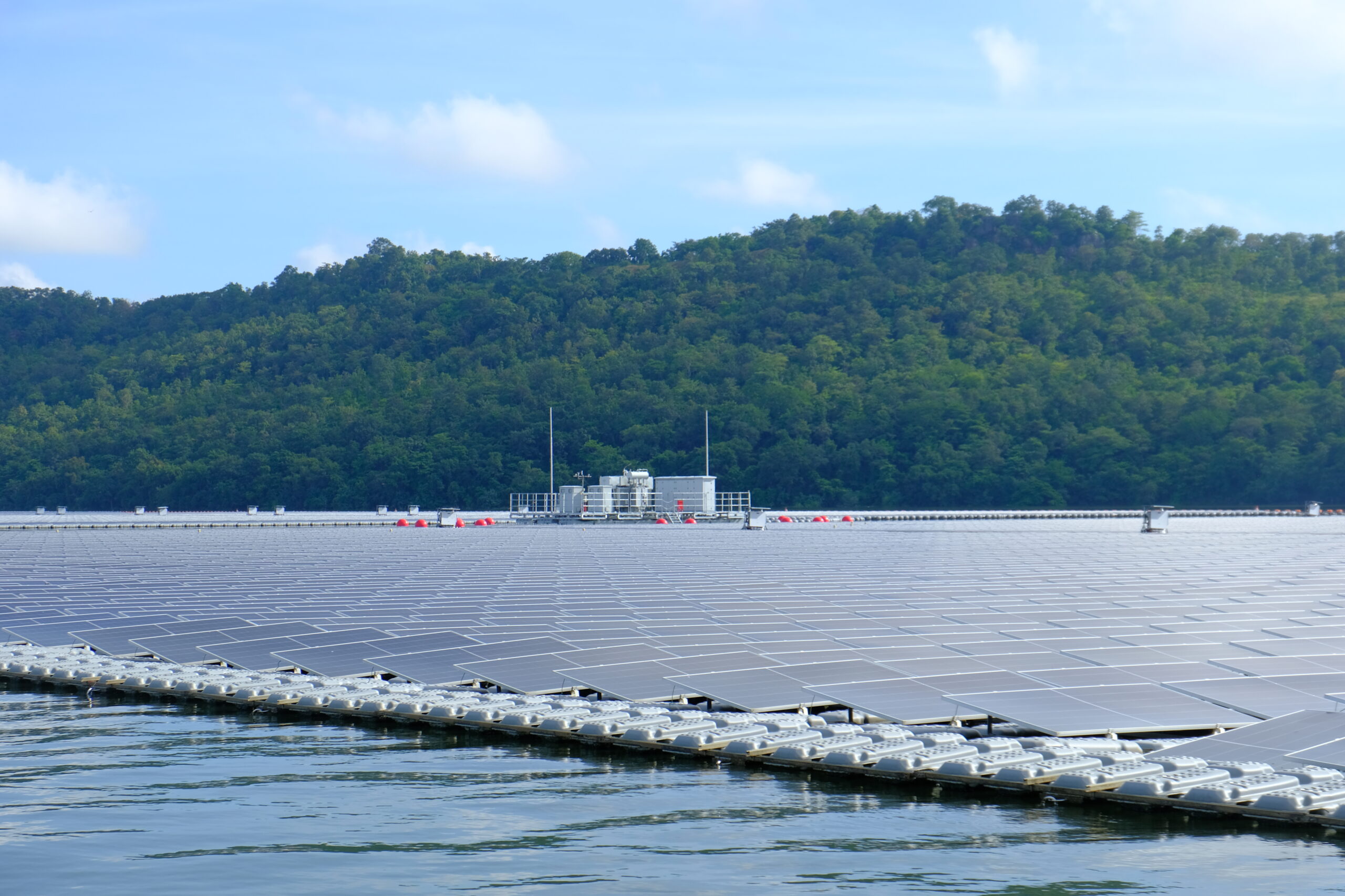 โฟกัสลงไปที่โครงการโซลาร์เซลล์ลอยน้ำไฮบริด ซึ่งนับว่าเป็นโครงการที่ตอบโจทย์ Decarbonization อย่างมีนัยสำคัญ และสอดคล้องกับหลักการ 3 ด้าน หรือ Energy Trilemma ของกระทรวงพลังงาน คือ สร้างความมั่นคงทางพลังงาน (Energy Security) เป็นพลังงานที่ช่วยขับเคลื่อนเศรษฐกิจของประเทศ (Energy Economy ) เพราะช่วยกระตุ้นให้เกิดการลงทุน และ เป็นพลังงานที่คาร์บอนต่ำ เพื่อให้ไทยเดินหน้าสู่เป้าหมายการปรับลดคาร์บอนในระดับโลก (Environmental Sustainability) โดยมีโครงการตัวอย่างที่ กฟผ. ดำเนินการสำเร็จไปแล้วก่อนหน้า คือ ที่เขื่อนสิรินธร จังหวัดอุบลราชธานี และ เขื่อนอุบลรัตน์ จังหวัดขอนแก่น
